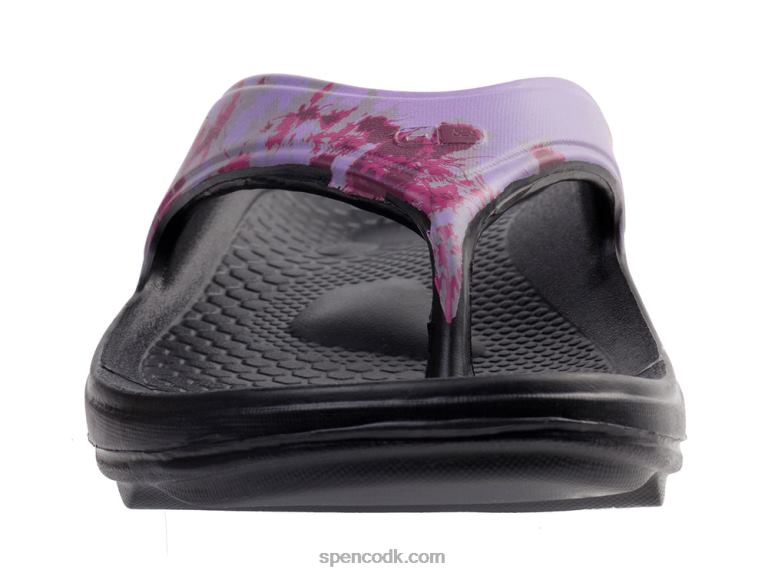 et sjovt tie-dye print dækker disse behagelige stringsandaler. skub dem på efter en træning eller en lang dag på fødderne, og du vil restituere med stil.